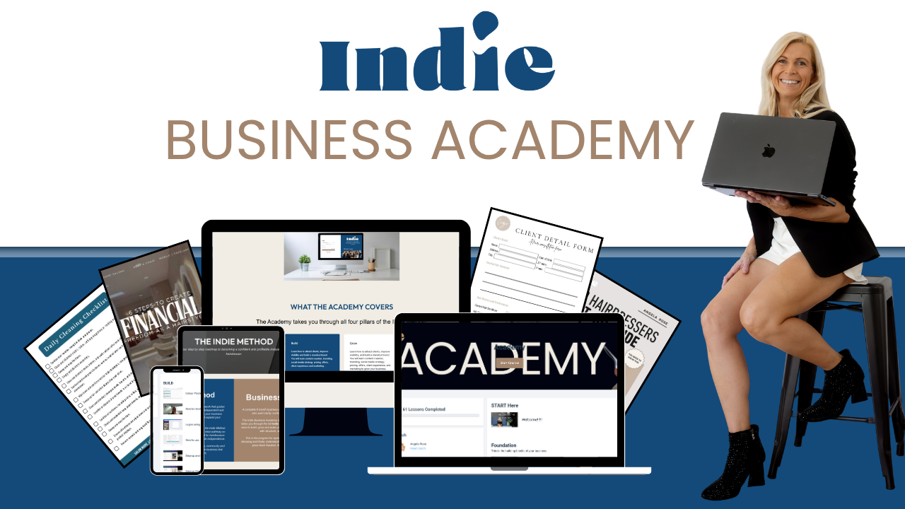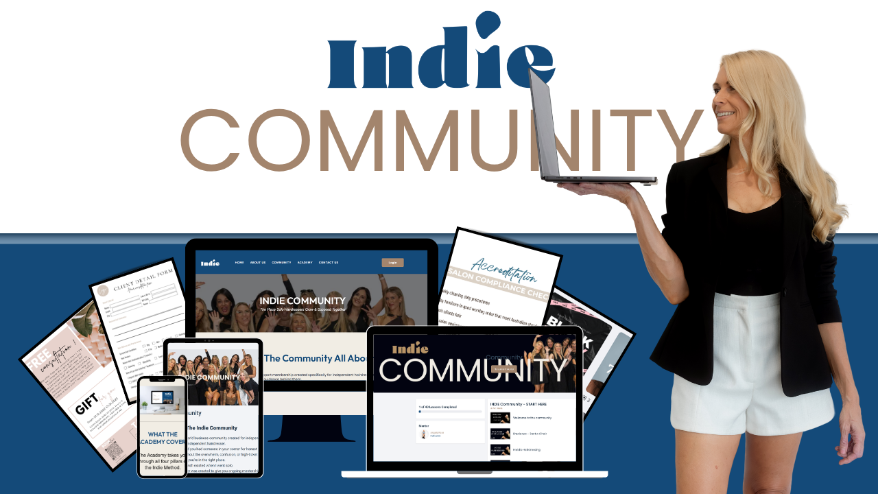 Created by Angela Rose, Indie exists to fill the gap no one else was talking about how to actually run a compliant, profitable solo hair business.